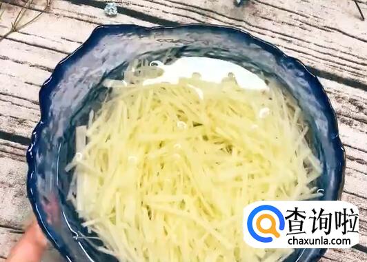 土豆切丝后放入冷水中浸泡,去淀粉。