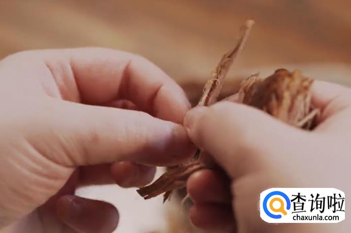 等牛肉彻底放凉,就可以顺纹手撕成丝。