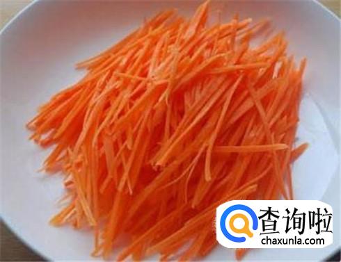 胡萝卜削皮,切成丝状,备用。