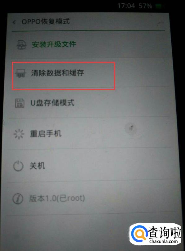 进入OPPO恢复模式,找到清除数据与缓存,选择清除用户数据和缓存。