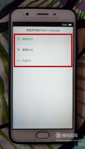 将手机进行关机,然后长按电源键开机。出现oppologo标志时,长按音量键。直到出来请选择语言的界面,选择简体中文。