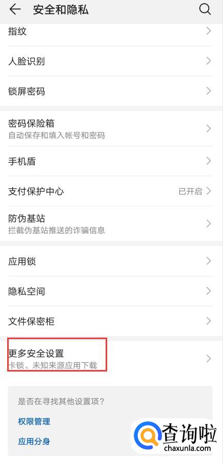 往下拉,找到并选择更多安全设置。