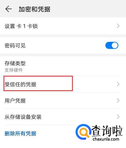 在打开的界面里选择受信任的凭据。