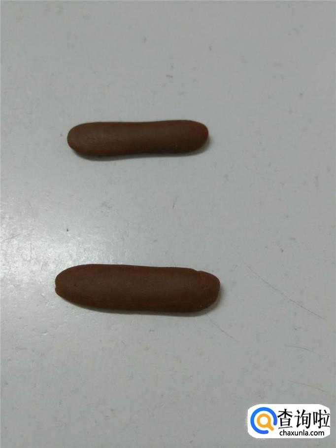 用棕色搓两个粗粗的圆条,再按扁,当作车架。