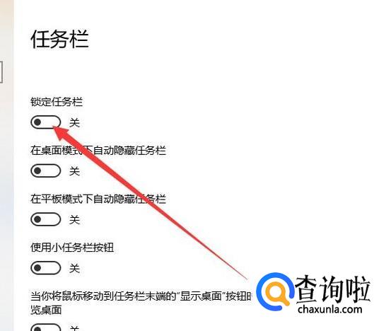 打开之后,图示位置的开关可以调整是否锁定任务栏。
