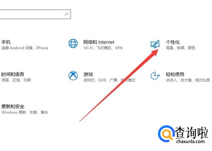 打开之后,点击“个性化”,进入下一页面,如图所示。