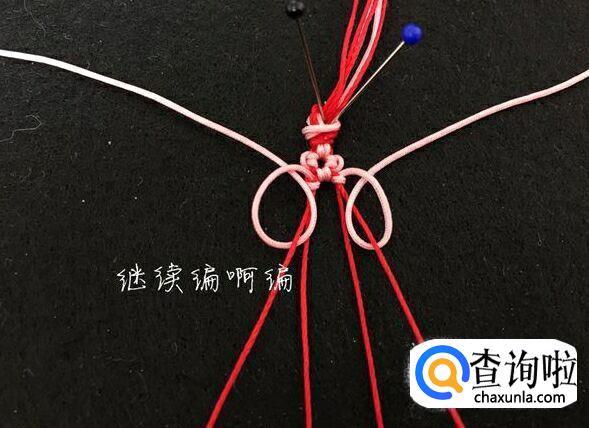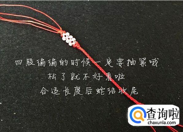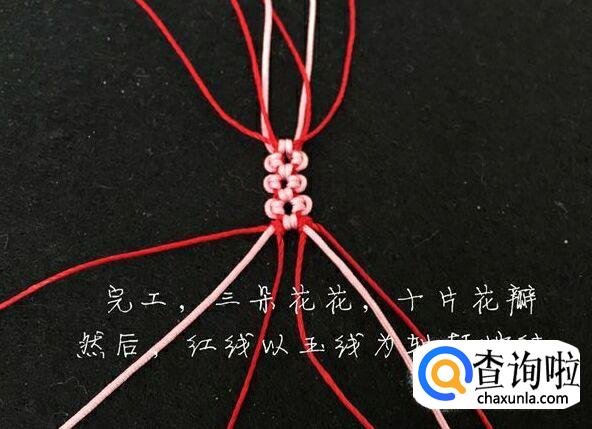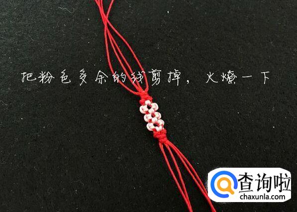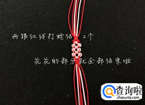 两根红线打两个蛇结,我们花的部分就做好了。