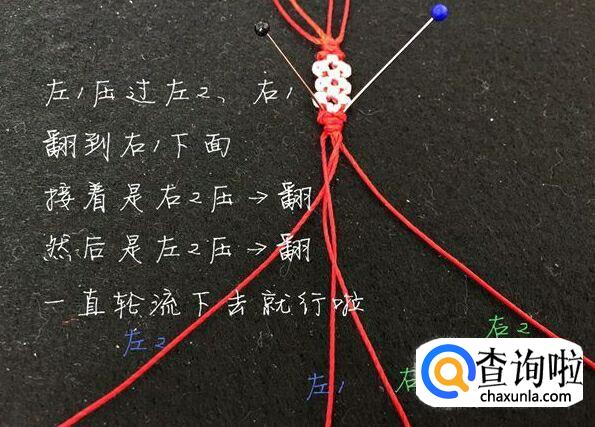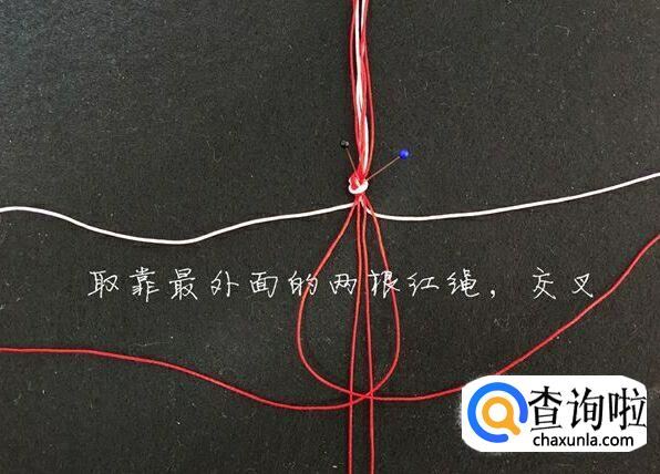 然后我们取最外面的两根红绳使其交叉。