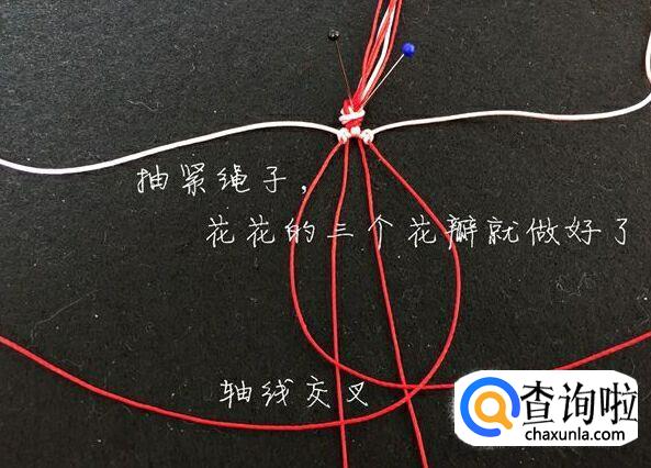 我们再抽紧绳子使轴线交叉,这样花花的三个花瓣就做好了。