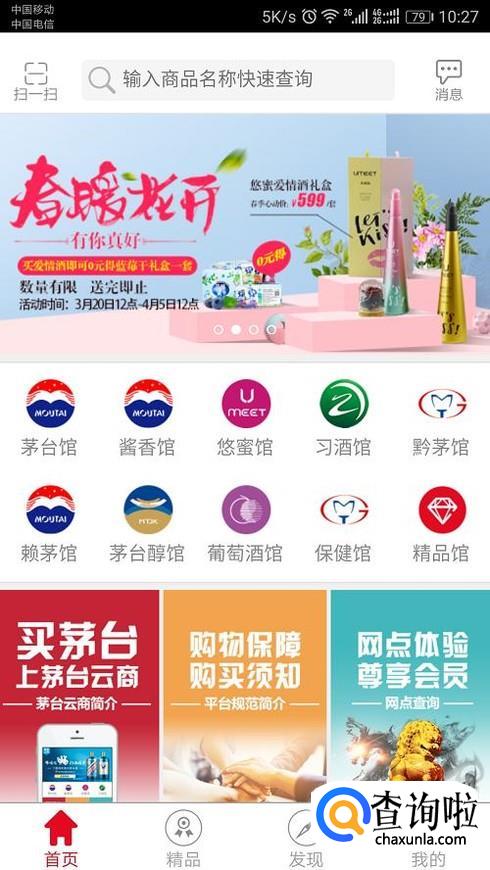 首先打开手机茅台云商APP,这时会出现以下界面。点击最上方搜索自己想买的酒的名字。