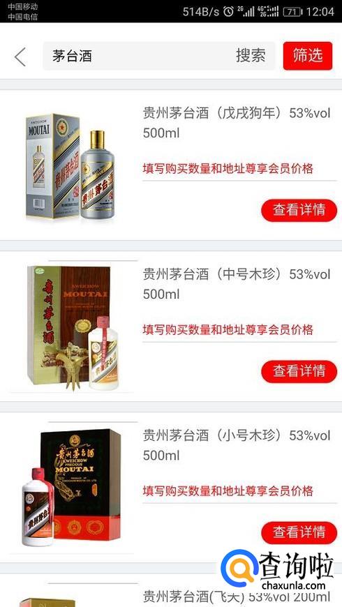 比如输入”茅台酒“,点击搜索,选择一款自己想买的。比如:图中第二款酒。