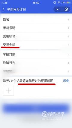 将姓名,手机号码,受害账号,受损金额等填写清楚,将截图上传上去