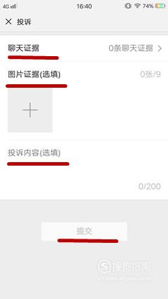 将聊天记录,图片,投诉内容等填写清楚后,点击底部的“提交,”等待微信团队处理即可。