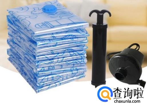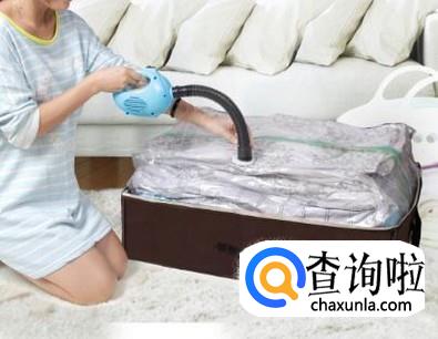 将装好的被子放在行李箱里面,然后用抽气泵将里面抽成真空,如图所示。