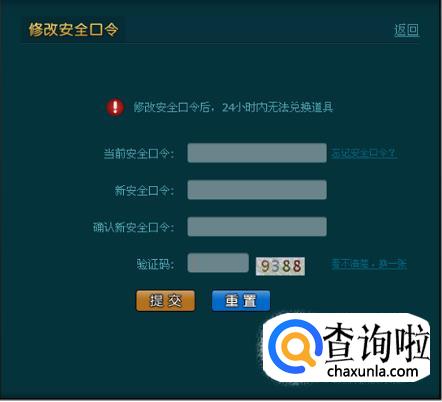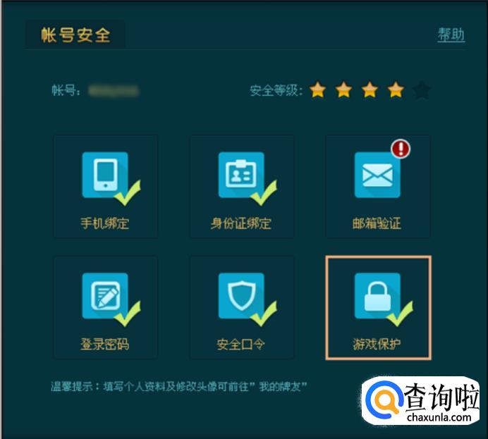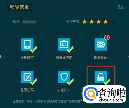 第五个是安全口令,在游戏的很多服务中都会用到安全口令,可以自行在这里进行设置。