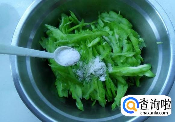 将浸泡好的苦瓜捞出,撒点盐拌匀后就可以享用了。