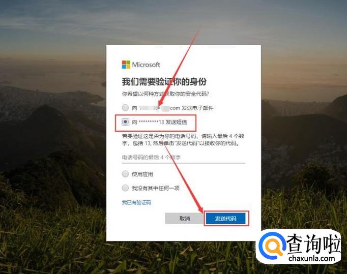 选择适合的方式验证自己的身份,如备用邮箱、手机号码、安全令等等。这里选择通过手机号码验证,补充号码后获取验证码,然后输入发送到手机的验证码验证身份。