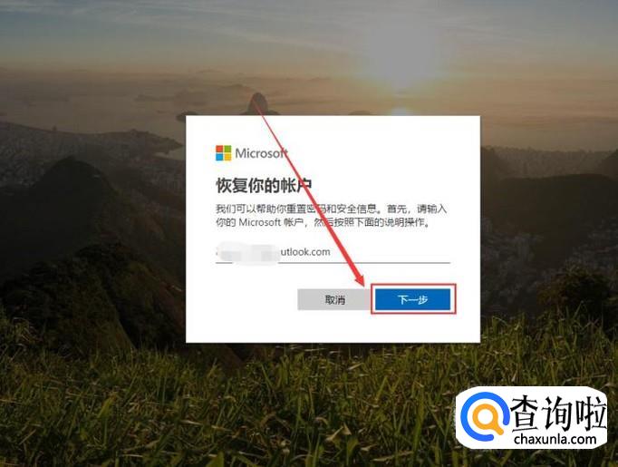 然后输入想要恢复密码的账号名称,点击下一步。