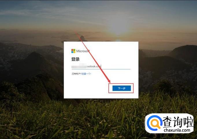 在新打开界面中输入outlook邮箱账号,点击下一步。