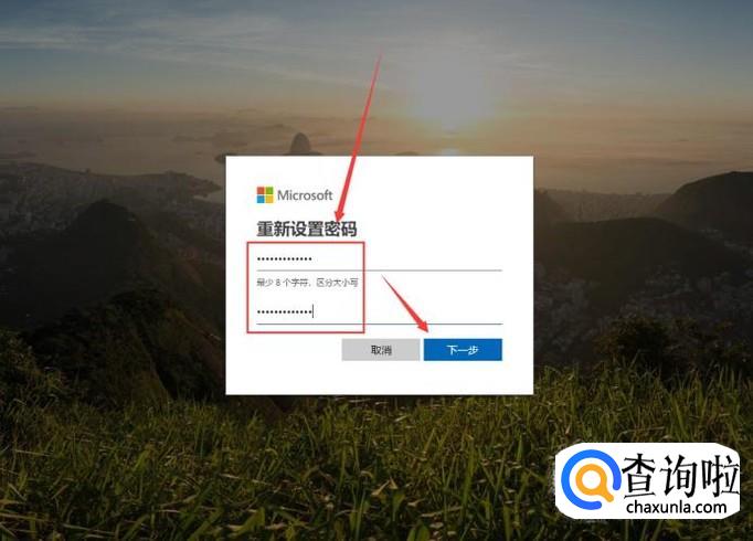 然后在重置密码页面输入新的密码,点击下一步就行了,新密码即设置成功。