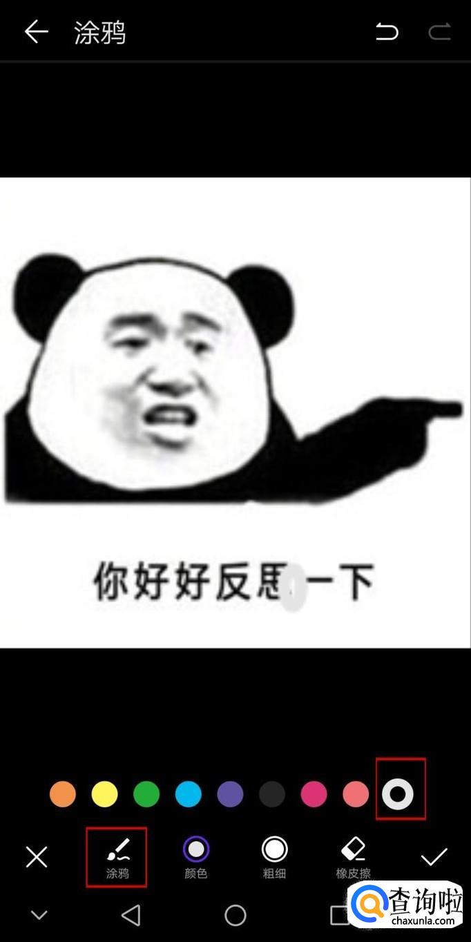 接着点击编辑,右划选择涂鸦,选择最大粗细,然后将原来表情包的字体涂抹掉