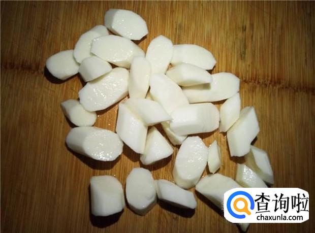 淮山削皮,清洗干净,切成小块。