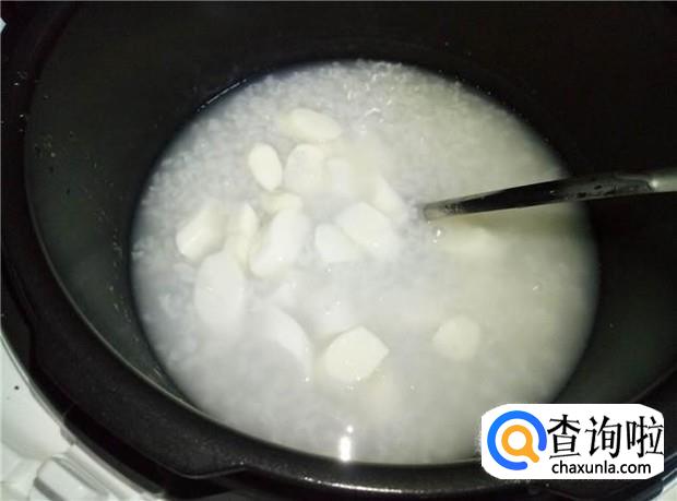 把切好的淮山倒入白粥里,先把淮山给煮软。