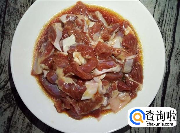 瘦肉切小块,清洗干净,加入适量的花生油、酱油、盐,腌制一会。