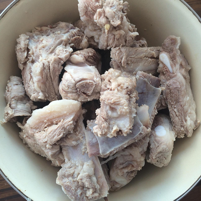 1、排骨用凉水洗净,焯水去血水后,再用凉水洗净、沥干。