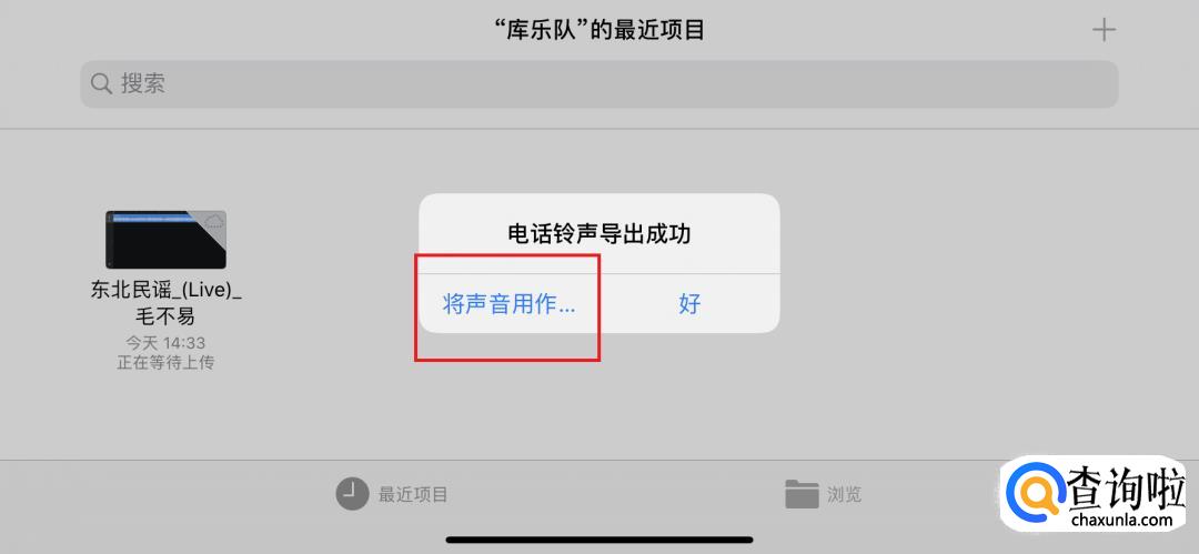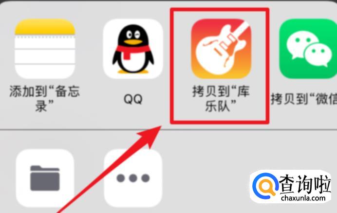 选择音乐后,我们需要拷贝到库乐队,一般苹果手机是自带库乐队这个软件的,若没有该软件,就提前将该软件下载安装好,然后进行拷贝。