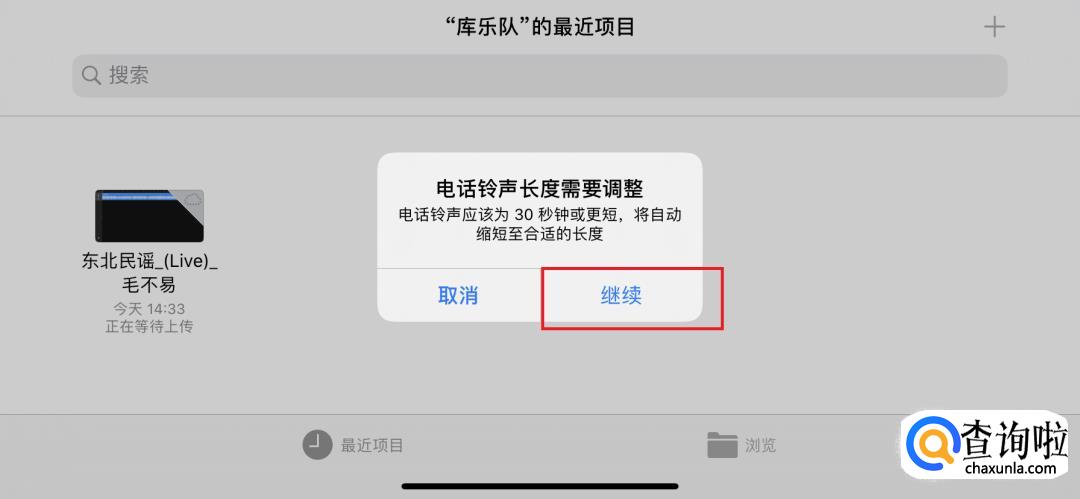 点击后,页面会弹出调整铃声长度的提醒,一般为30秒,接着点击继续,它会自动调节合适。