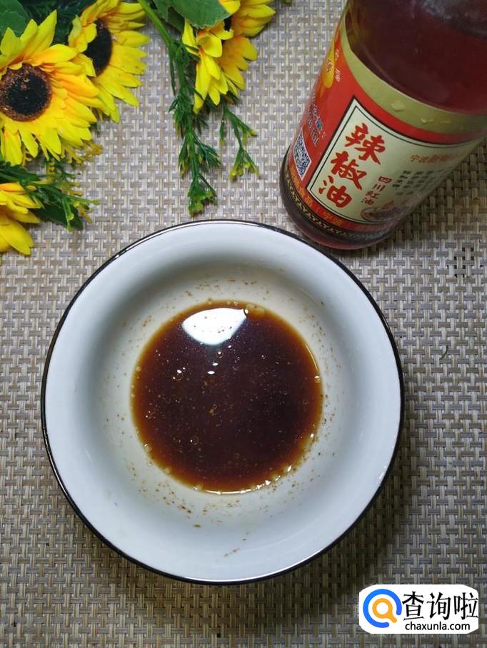 碗中加入适量盐,鸡精,五香粉,白砂糖,生抽,陈醋,喜欢辣的,还可以加入一些辣椒油,搅拌均匀,做成料汁。