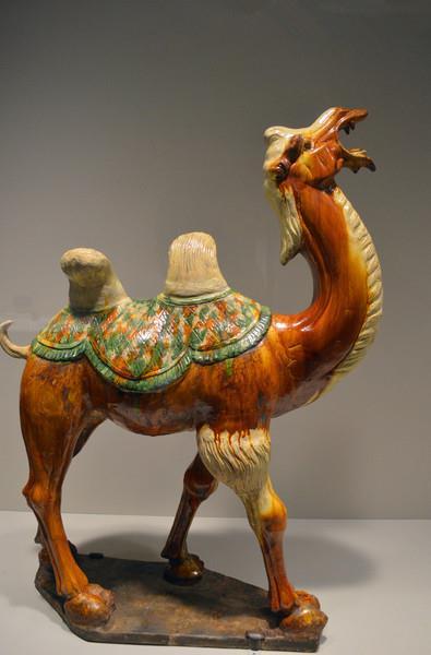 唐三彩在色彩的相互辉映中,显出堂皇富丽的艺术魅力。唐三彩用于随葬,作为冥器,因为它的胎质松脆,防水性能差,实用性远不如当时已经出现的青瓷和白瓷。