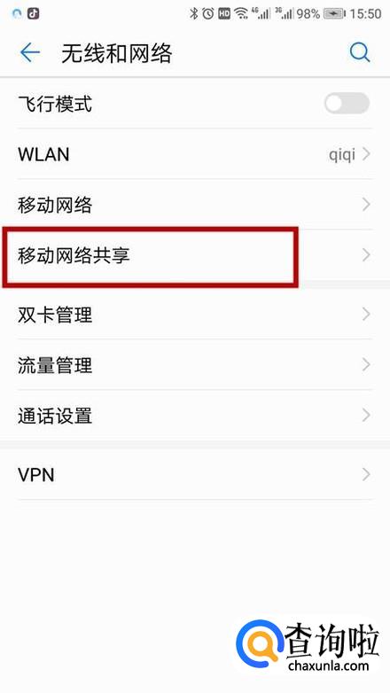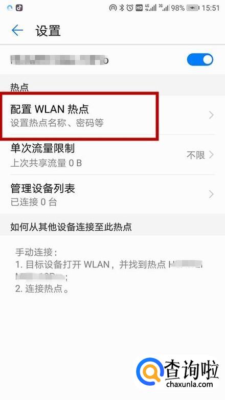 然后就看到了便携式WLAN热点,点击它,如图所示。