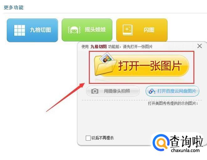 点击九格切图选项在弹出的对话框内找到打开一张,如图所示:
