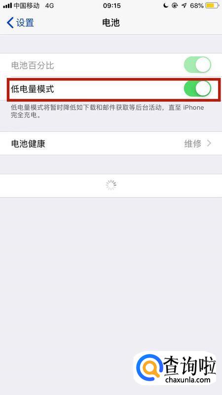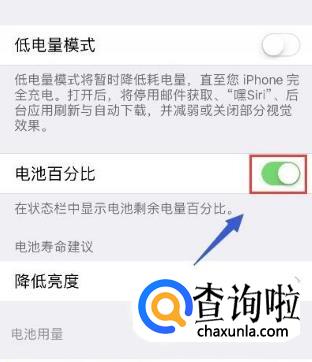 该界面还有一个<低电量模式>,如果我们之前设置了低电量模式,那么我们就不能打开或者关闭<电池百分比>。