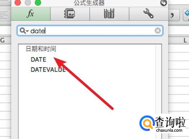 在函数窗口上输入Date进行搜索。搜索得到函数,双击下方的函数名。