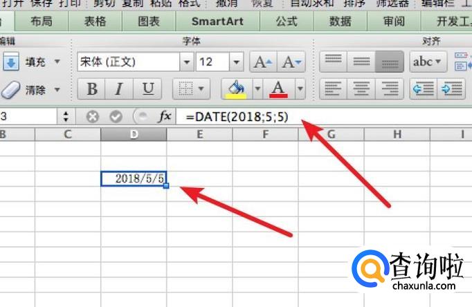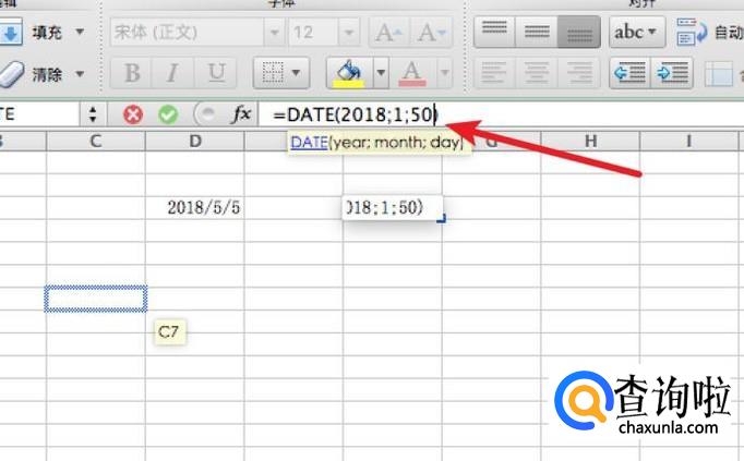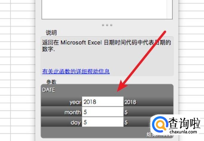 点击后,下方就会列出该函数的参数了,我们在这里输入几个参数数据,分别代表年月日。