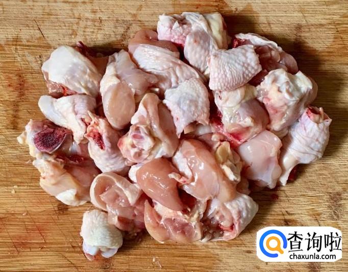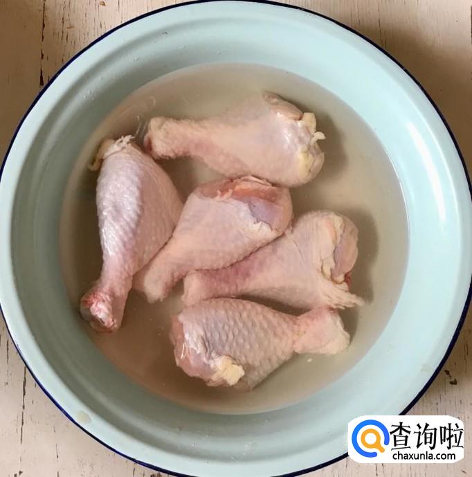 鸡小腿5个左右清洗干净后浸泡一小时左右,沥干水分斩成小块备用