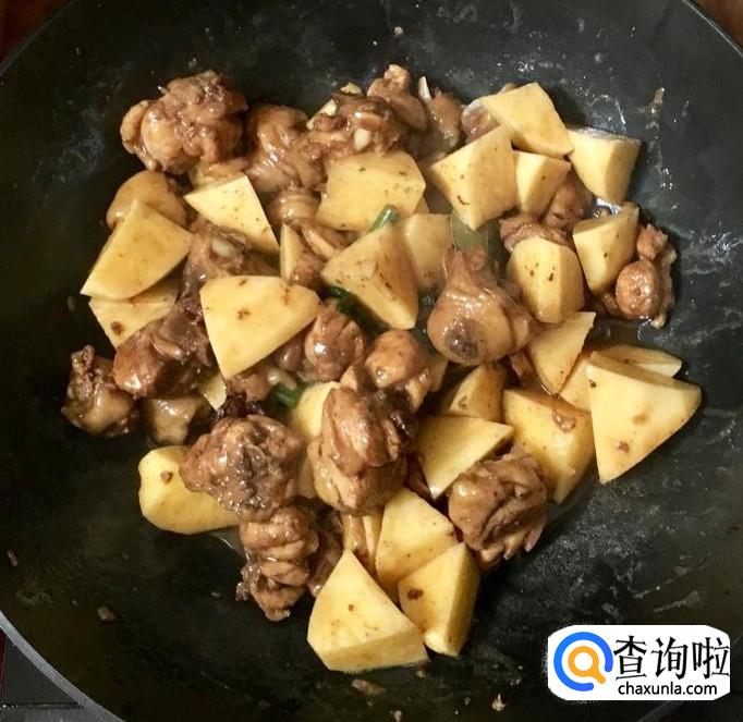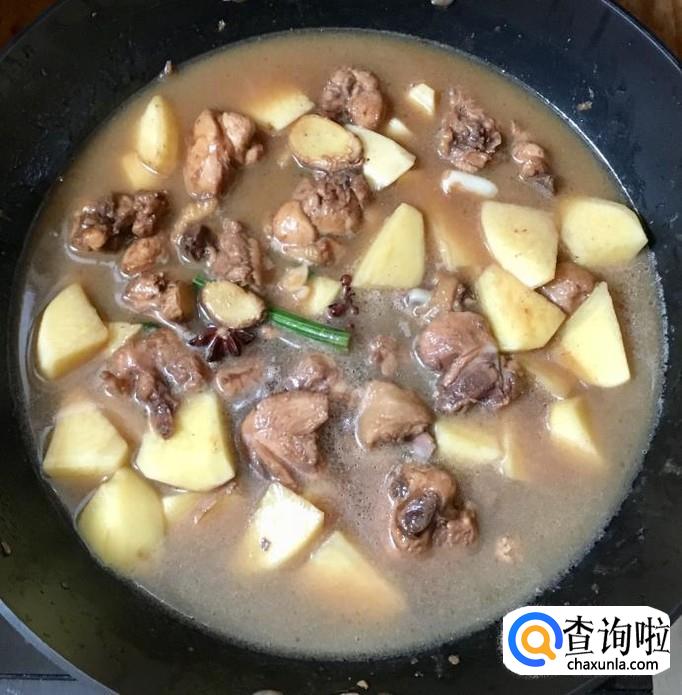 倒入切好的土豆块再次翻炒均匀后加入适量的清水和盐调味儿,大火煮沸转中火慢炖20分钟左右