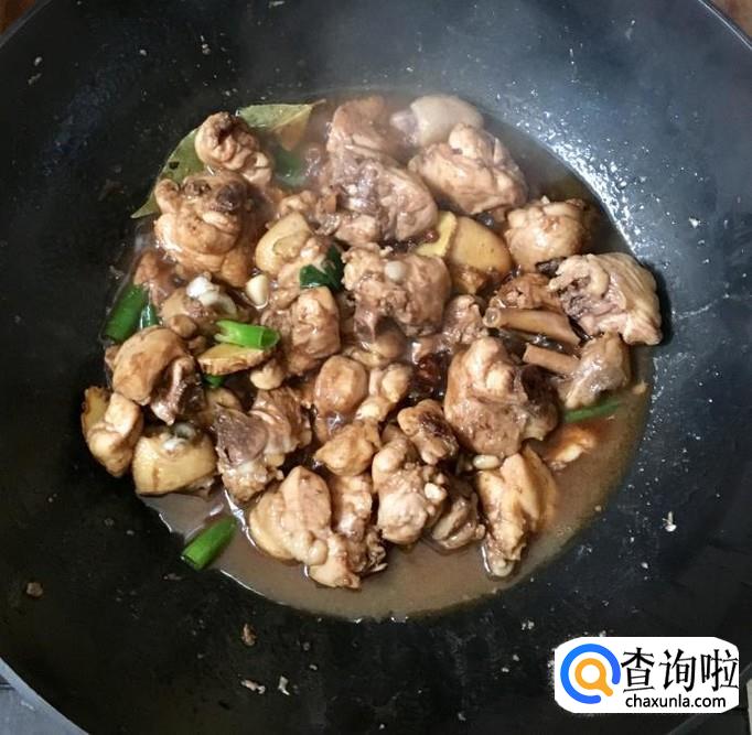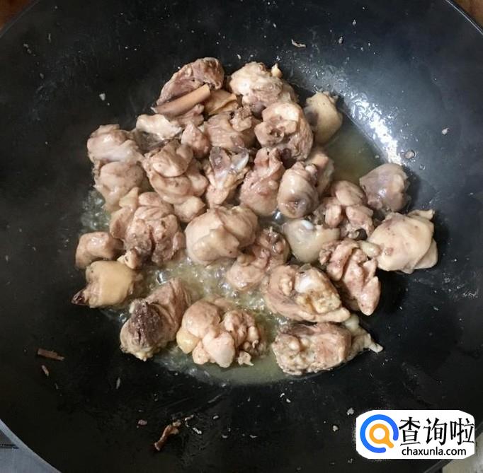 热锅加入适量的花生油倒入斩好的鸡翻炒均匀并炒干水分,放入葱段、姜片、大蒜、八角、花椒、茴香梗、香香炒香,料酒、生抽、香醋烹锅,再加一点点白糖和十三香继续翻炒均匀使其上色