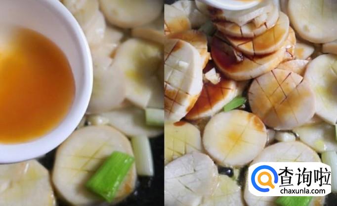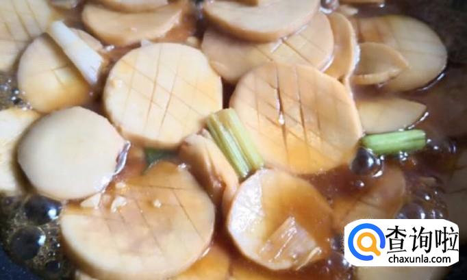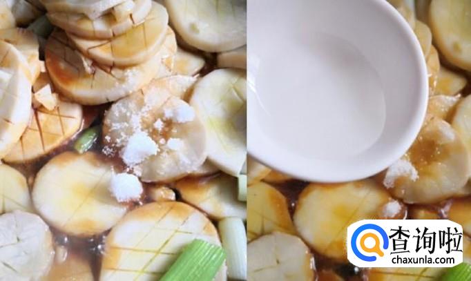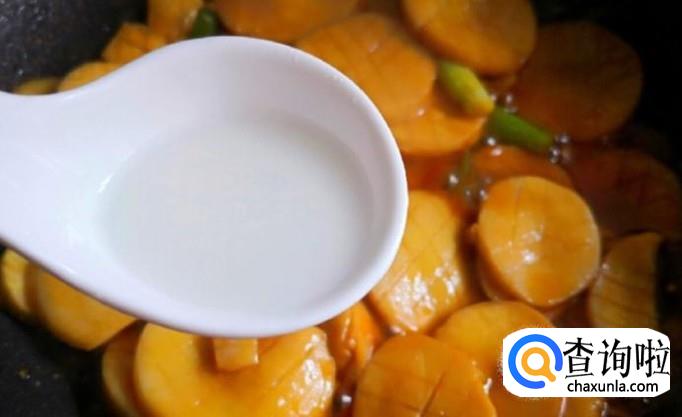 煮至入味,淋入适量芡粉使汤汁变的粘稠。