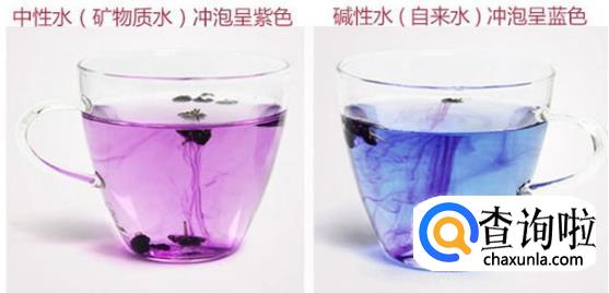 黑枸杞泡酸性水(矿物质水)成紫色,泡碱性水(山泉水、自来水等)成蓝色。为什么黑枸杞泡水会呈现出不同的颜色呢,是因为其中的花青素溶于水发生不同的反应,而导致的不同颜色。