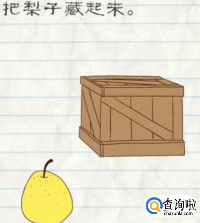 第52关,怎么藏梨子,移动箱子是没用的,直接把手机的屏幕向下,让屏幕无光线,就可以过关了。