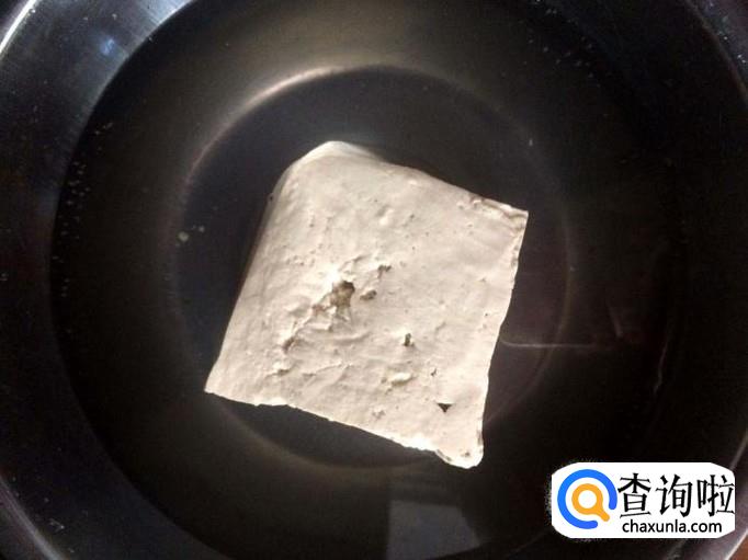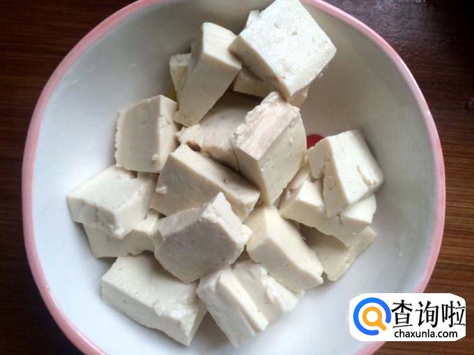 豆腐买回后,浸泡到水里。煮汤前将豆腐表面清洗,切成小块。