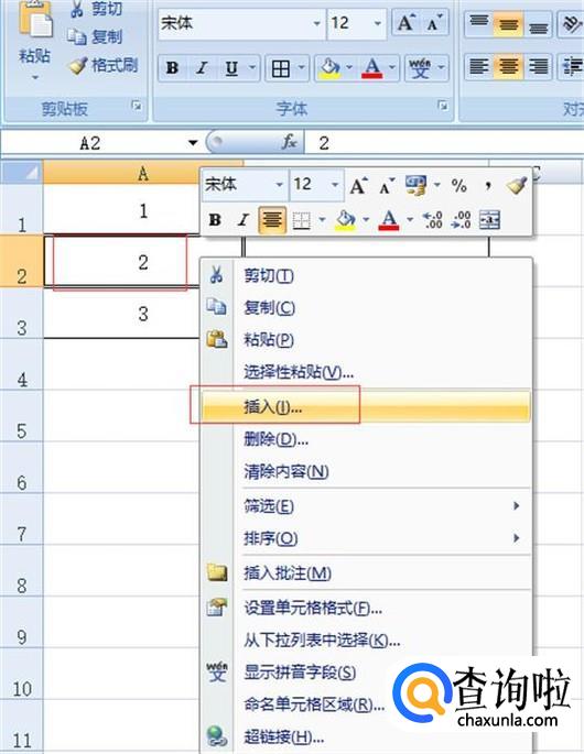 选中2所在表格,右击鼠标,找到插入,见下图