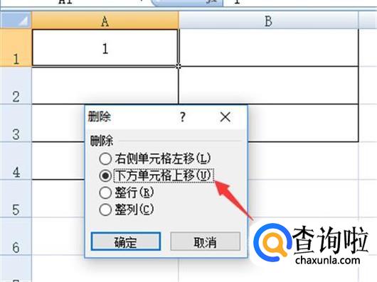 点击删除,选择下方单元格上移,见下图