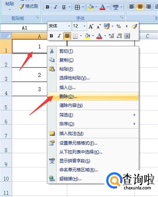 选中1的表格,右击鼠标,选中删除,见下图