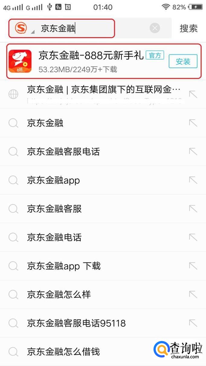 首先,我们需要在手机上安装“京东金融”app,可以用浏览器搜索的方式,下载之后,正确安装。