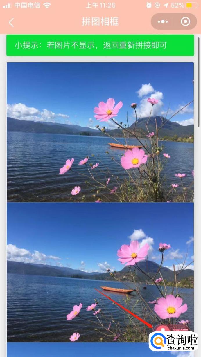 然后点击下方的选项,一个是横向拼接,一个是竖向拼接,选择你想要的拼接方式并点击过后,就可以看到拼接好过后的图片啦,最后我们点击“保存”就可以了。